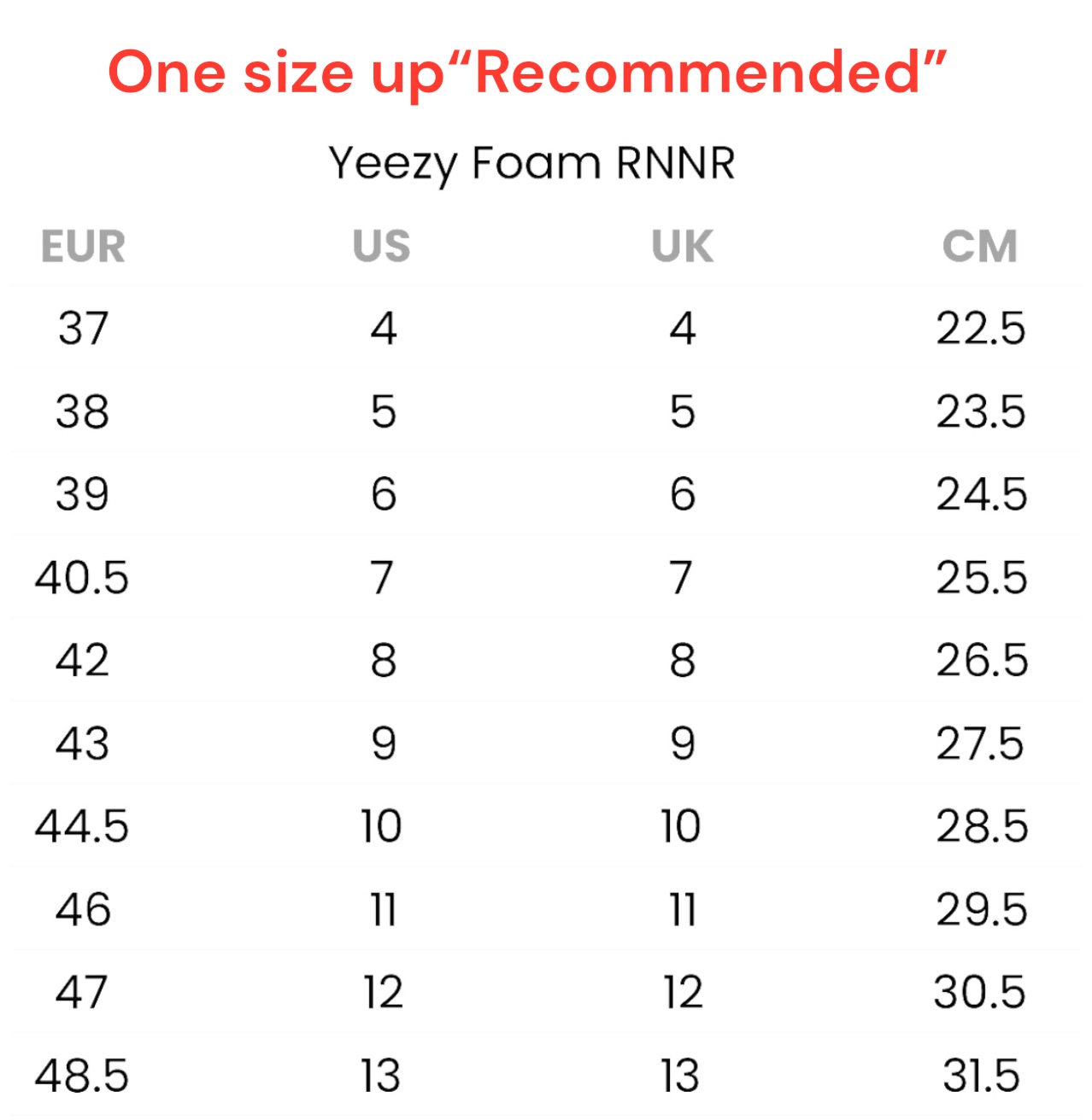 - Recommend : one size up