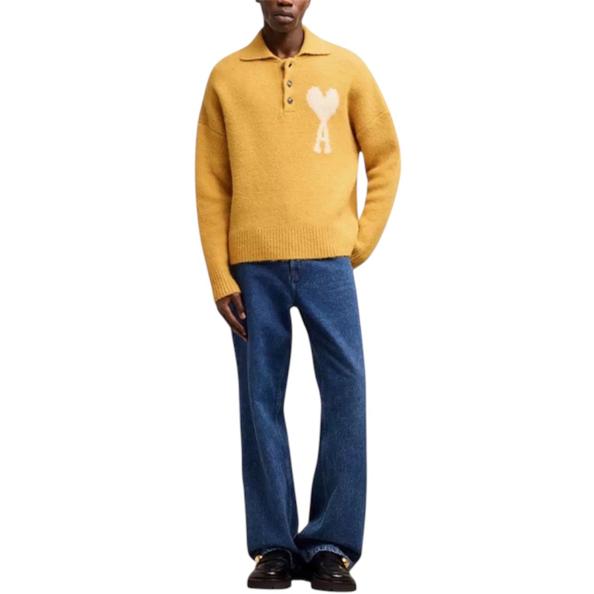 Ami Paris Ami De Coeur Wool Oversized Shirt “Mustard/White”