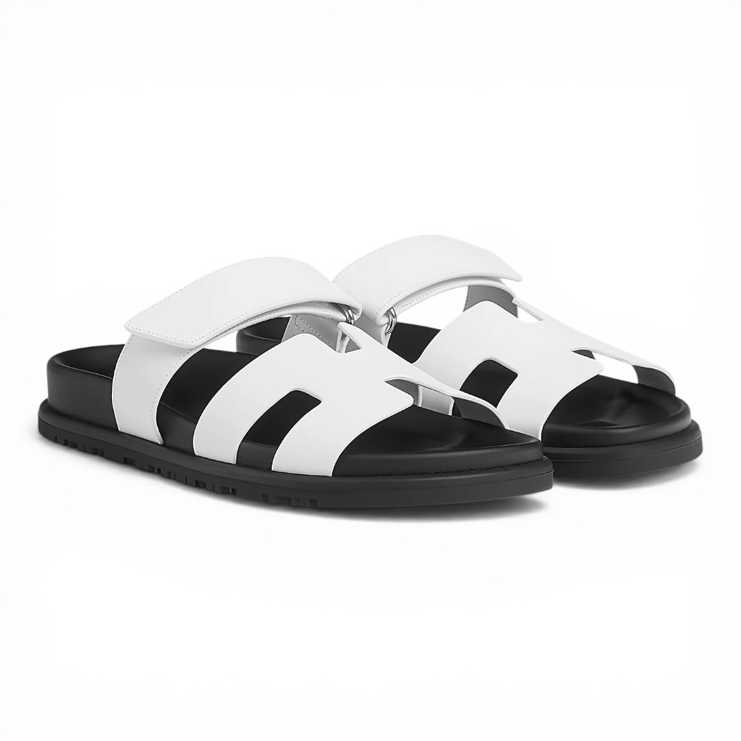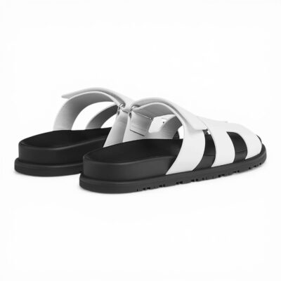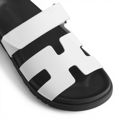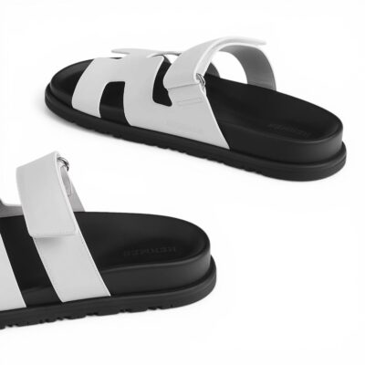 Hermes Chypre Sandal Noir Calfskin Leather “White/Black”