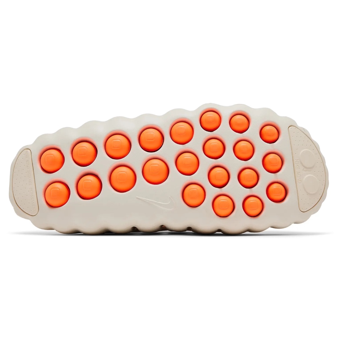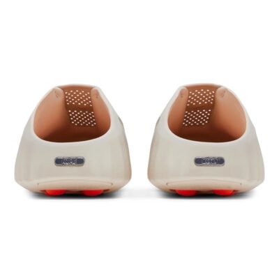 offers a mind-altering experience for your recovery and prep time. This mule silhouette features a clean Light Bone upper accented by Hyper Crimson details on the outsole nodes. Scientifically designed to engage your senses, the 22 outsole nodes push against your foot to stimulate brain activity and promote focus. The soft foam midsole provides plush cushioning, while the stretchy footbed fabric allows the nodes to move freely without sacrificing comfort. Rubber pods on the toe and heel ensure durable traction for this futuristic slip-on.