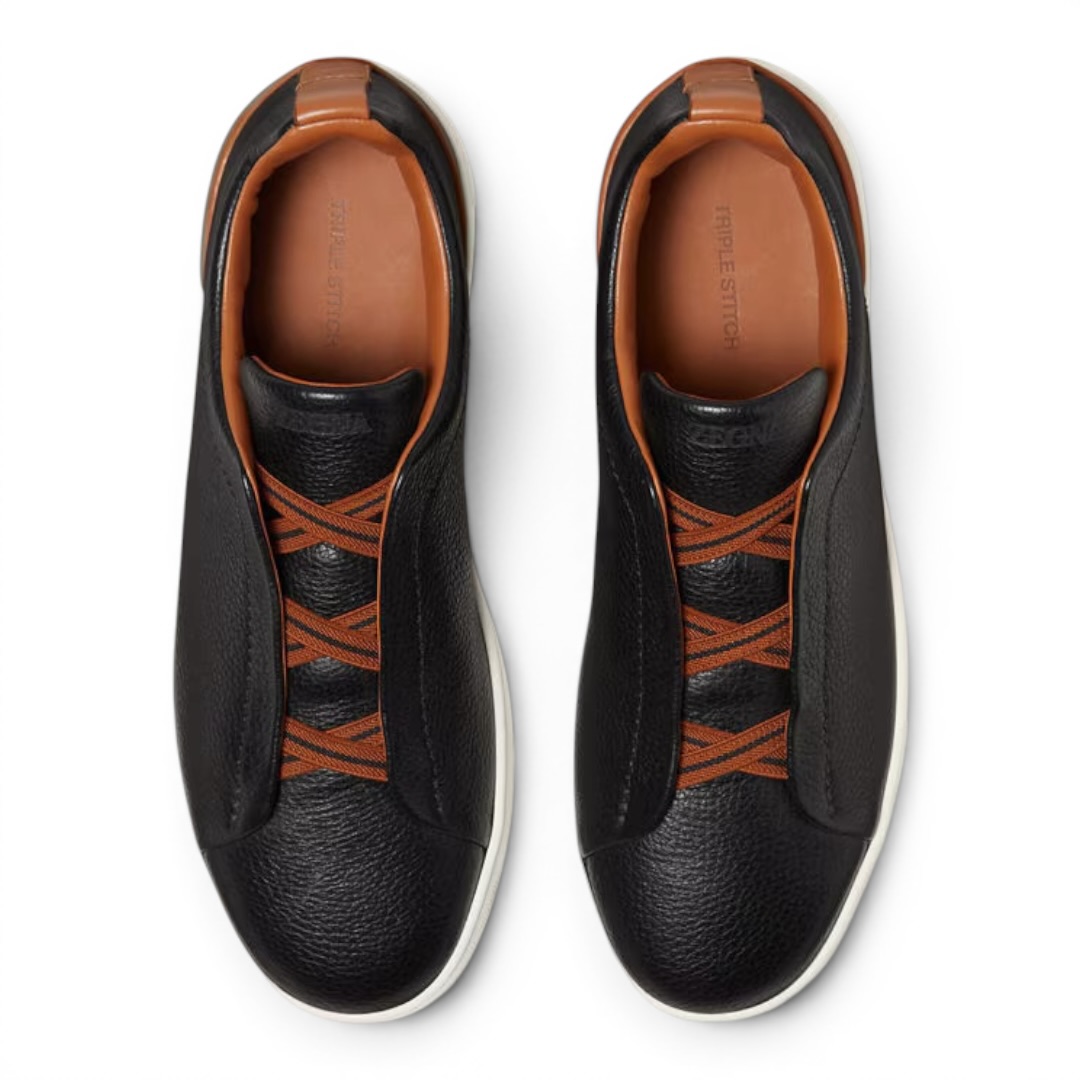 Be the first to review “Zegna Deerskin Triple Stitch Sneakers “Black””